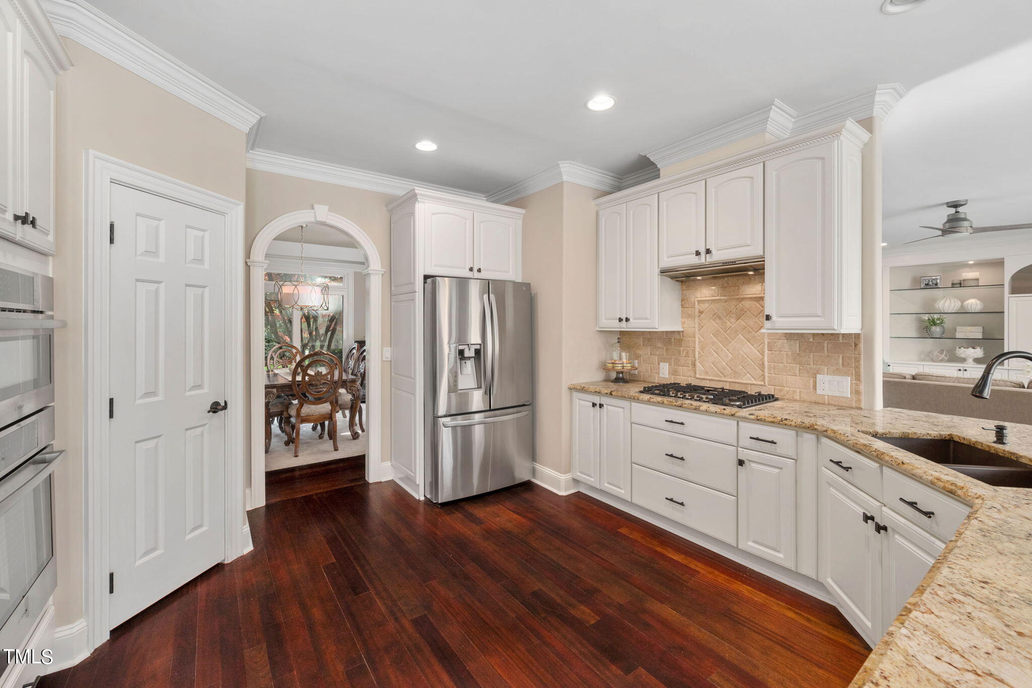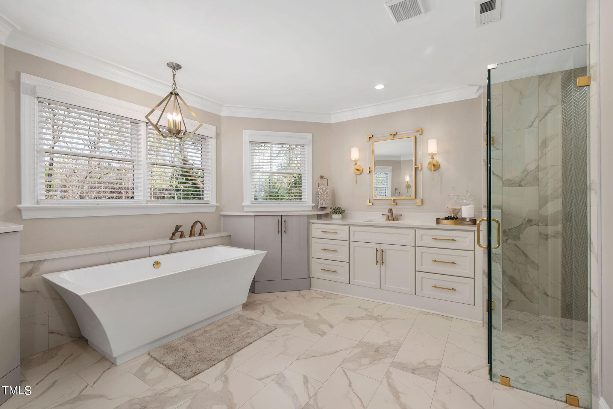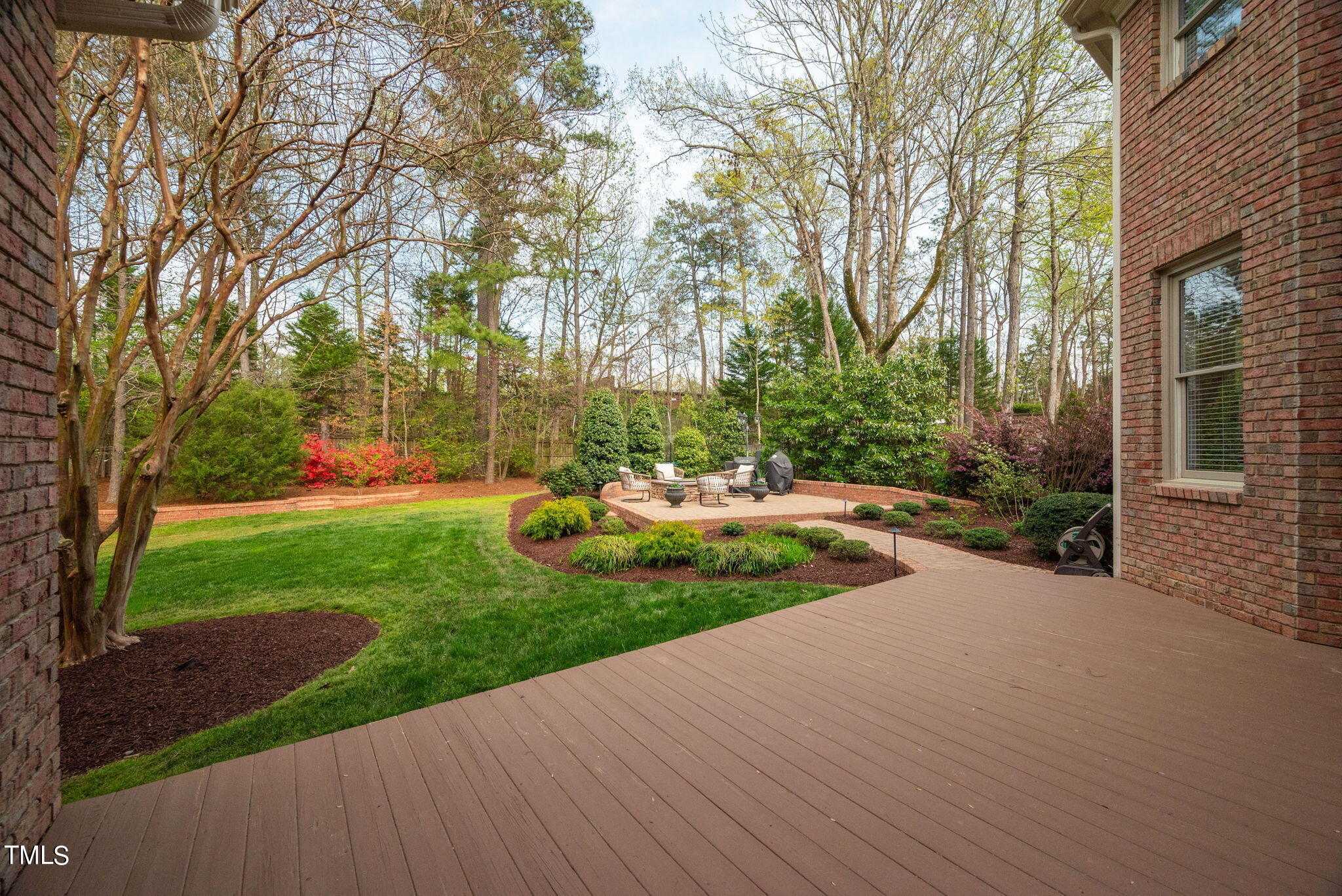 Welcome to this stunning luxury home in Weston Estates! This custom all-brick home offers unparalleled craftsmanship and stunning design throughout. With 4 bedrooms plus an office and bonus room, there's ample space for every need. The first floor bedroom and full bath is perfect for accommodating guests or extended family. Entertain in style in the gourmet kitchen, equipped with top-of-the-line Bosch appliances, including a wall oven and gas cooktop with vented hood. Upstairs, you'll find 3 bedrooms, each with its own private bath, completely remodeled. The fully renovated master bath provides a luxurious walk in rainhead shower, soaking tub, dual vanities and quartz countertops. With a large bonus room and wet bar, it's ideal for watching movies, or adding a game room or gym. Lots of storage with a 3 car garage and walk up attic which can be easily finished. Relax in the private fenced backyard with a deck, paver patio/fire pit, and large enough for a pool. The location is unbeatable. The community has a pool/playground and connects to the Morrisville Greenway. Convenient to RDU, RTP, SAS and the new Apple RTP campus.
